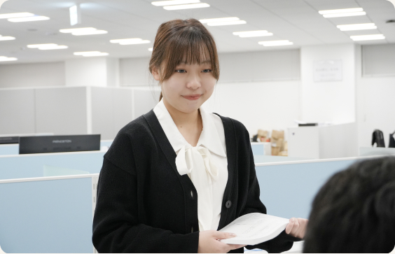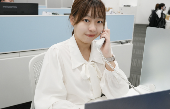 学生時代は電話がとても苦手だったのですが、今は全く抵抗がないので、友人の代わりに電話をかけたりもしています。もちろん、仕事なので当たり前ではあるのですが、ここまでできるようになったのは、先輩方のおかげだと思います。言葉が出てこない時や、うまく伝えられたか不安になった時に、先輩が隣で聞いてくださって、アドバイスをもらえたりしたので、すごく安心できました。わからないことでも質問しやすい雰囲気があり、とても居心地が良いです。